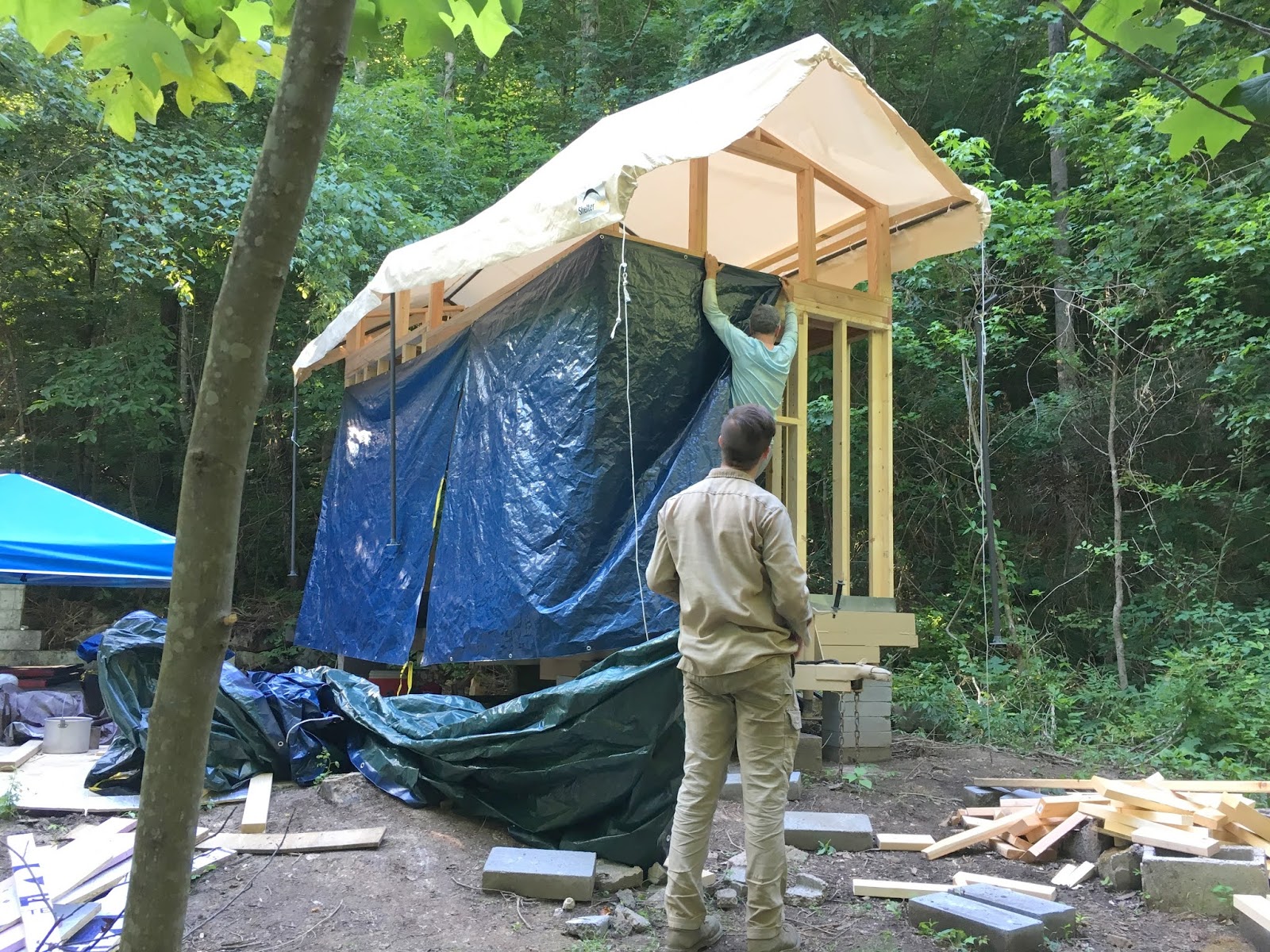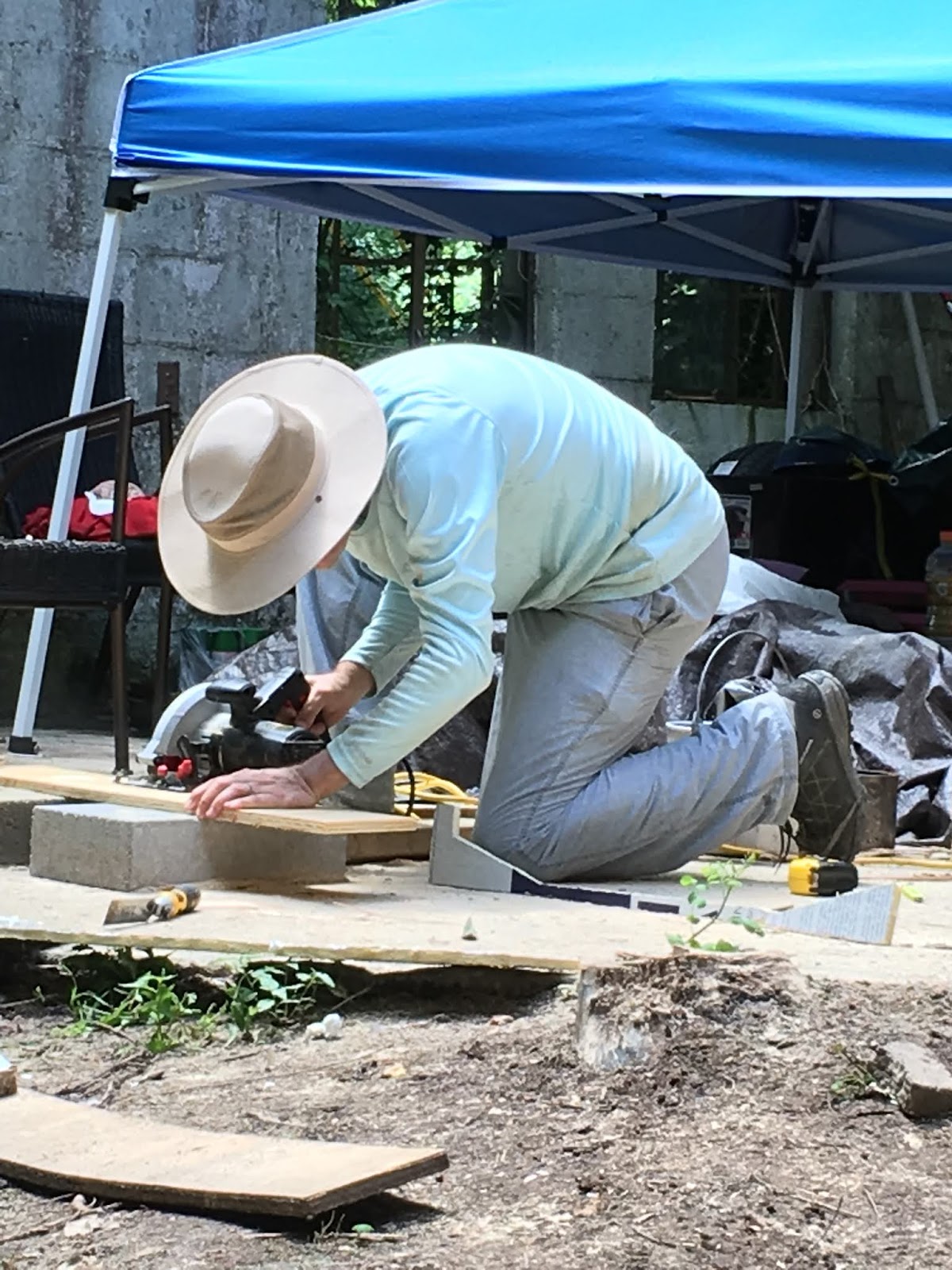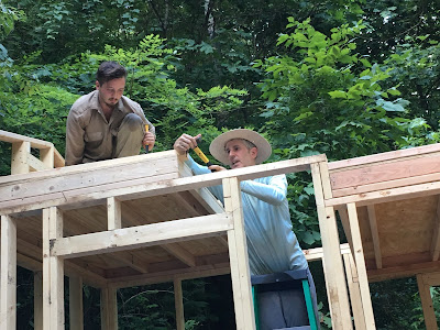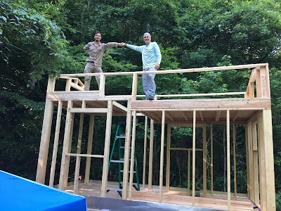 And then I met a fellow-chicken obsessive in North Carolina and together we are working on a survival chicken project. In the spring I'm planning on starting a separate flock of entirely free-range birds. My younger son ,who is now a finish carpenter, framed both the coop for the original flock and the little shelter I built in the woods for them.